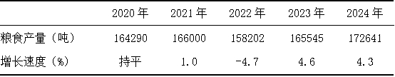 表一? 2020-2024年糧食產(chǎn)量和增長(zhǎng)速度