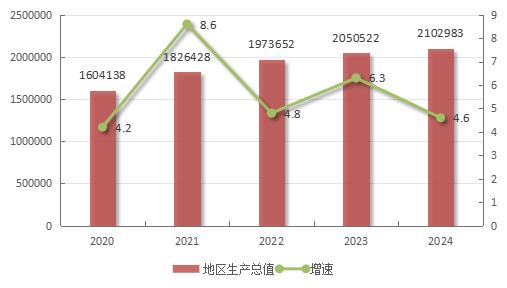 圖一 ????2020-2024年地區(qū)生產(chǎn)總值和增長(zhǎng)速度