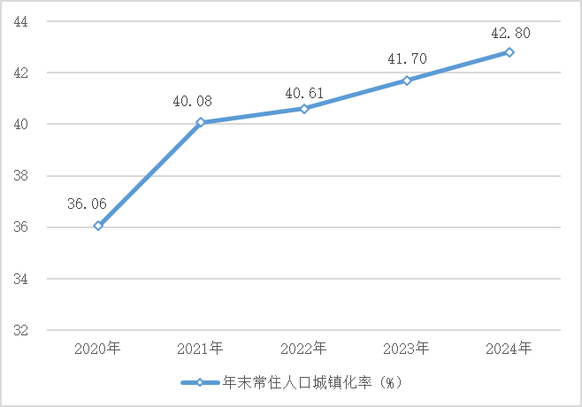 圖6 2020-2024年儀隴縣年末常住人口城鎮(zhèn)化率