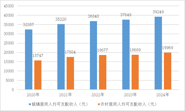 圖7?2020-2024年城鄉(xiāng)居民人均可支配收入