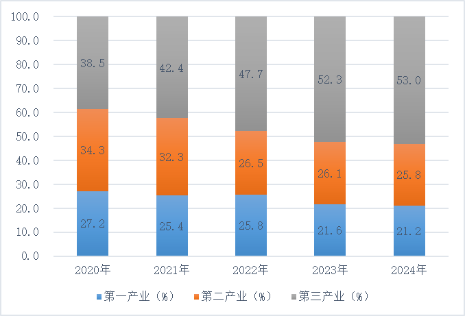 圖2 2020-2024年儀隴縣三次產(chǎn)業(yè)增加值占地區(qū)生產(chǎn)總值比重