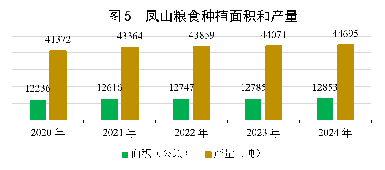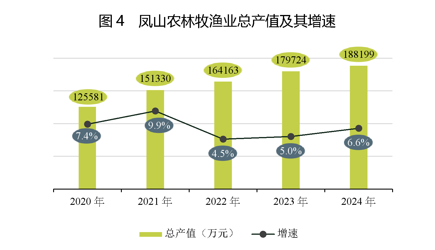 | 表1?2024年鳳山主要農(nóng)產(chǎn)品產(chǎn)量及其增速 | ||