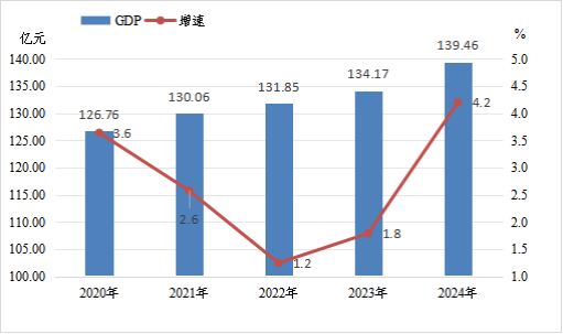 初步核算,全年全縣地區(qū)生產(chǎn)總值(GDP)為139.46億元,同比增長4.2%。其中,第一產(chǎn)業(yè)增加值18.64億元,同比增長4.0%;第二產(chǎn)業(yè)增加值66.41億元,同比增長3.4%;第三產(chǎn)業(yè)增加值54.41億元,同比增長5.3%。全年人均地區(qū)生產(chǎn)總值55939元,同比增長3.6%。