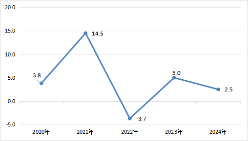 圖5??2020-2024年建筑業(yè)增加值增長速度