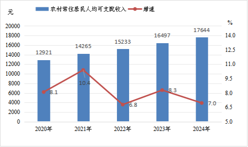 圖12??2020-2024年農(nóng)村常住居民人均可支配收入及其增長速度
