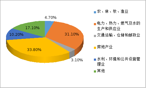 從行業(yè)投資占比情況看,農(nóng)、林、牧、漁業(yè)占4.7%,電力、熱力、燃?xì)饧八纳a(chǎn)和供應(yīng)業(yè)占31.1%,交通運(yùn)輸、倉儲和郵政業(yè)占3.1%,房地產(chǎn)業(yè)占33.8%,水利、環(huán)境和公共設(shè)施管理業(yè)占10.2%,其他占17.1%。