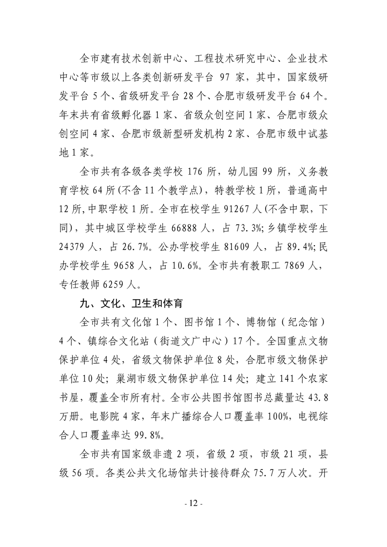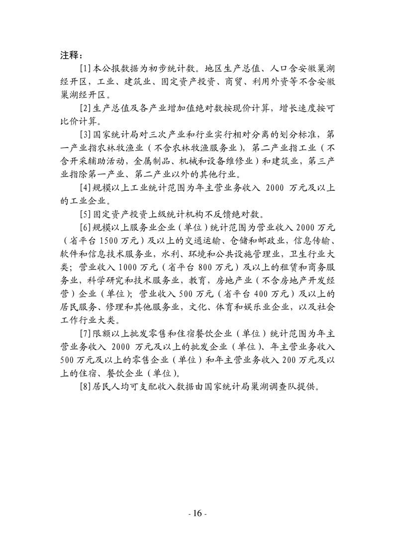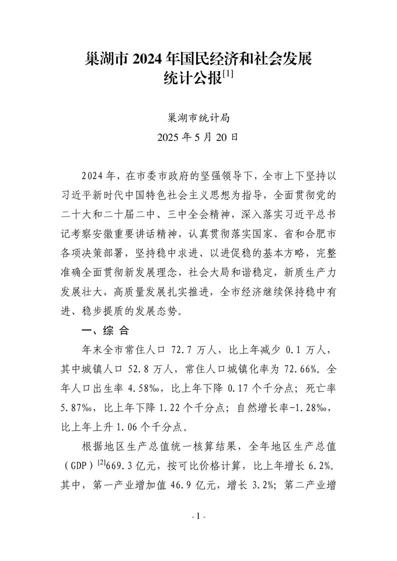 2024年合肥市巢湖市人民政府國(guó)民經(jīng)濟(jì)和社會(huì)發(fā)展統(tǒng)計(jì)公報(bào)(2025年更新)