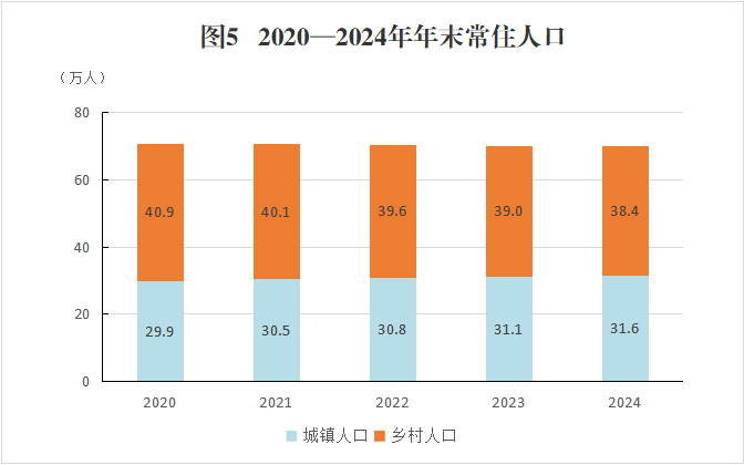 2024年末,公安戶籍總戶數(shù)308497戶,總?cè)丝?72441人。按性別分,男515592人,占總?cè)丝诘?3.0%;女456849人,占總?cè)丝诘?7.0%。按居住地分,城鎮(zhèn)居民212654人,占總?cè)丝诘?1.9%;農(nóng)村居民759787人,占總?cè)丝诘?8.1%。全年出生人口6092人,人口出生率6.2‰;死亡人口8729人,人口死亡率8.9‰;人口自然增長率-2.7‰。全縣常住人口70.0萬人,城鎮(zhèn)化率45.16%,比上年提高0.82個百分點。