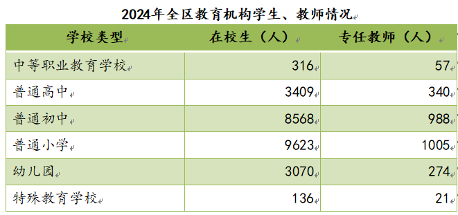全區(qū)現(xiàn)有中等職業(yè)教育學校1所,普通高中3所,普通初中18所,普通小學(含農(nóng)村小學網(wǎng)點)16所,特殊教育學校1所,幼兒園37所。