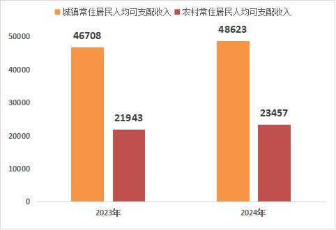 全年全縣城鎮(zhèn)常住居民人均可支配收入48623元,比上年增長4.1%。農(nóng)村常住居民人均可支配收入23457元,比上年增長6.9%。