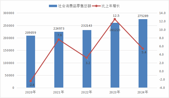 圖6:2020年--2024年社會消費品零售總額及其增長速度