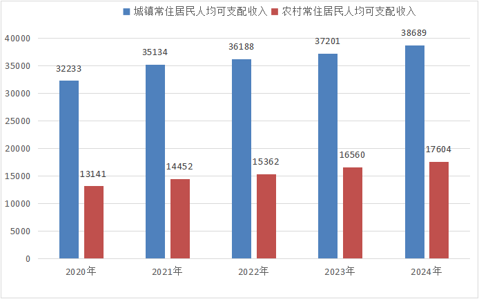 圖8:2020年-2024年城鎮(zhèn)、農(nóng)村常住居民人均可支配收入