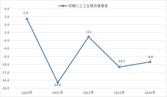 全年實現(xiàn)規(guī)模以上工業(yè)增加值比上年下降9.4%。從門類看,采礦業(yè)增加值下降1.4%;制造業(yè)增加值下降17.0%;電力、熱力、燃氣及水生產(chǎn)和供應(yīng)業(yè)增加值增長13.5%。