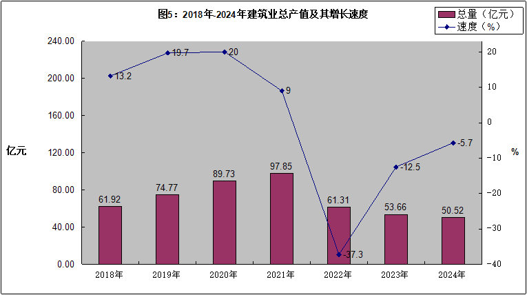 全年建筑業(yè)增加值18.35億元,比上年增長(zhǎng)16.3%。年末資質(zhì)等級(jí)建筑企業(yè)44家,完成建筑業(yè)總產(chǎn)值50.52億元,下降5.7%; 實(shí)現(xiàn)利潤(rùn)總額0.22億元,同比下降2.8%。