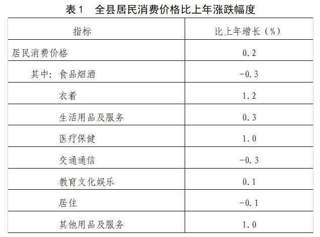 全年全縣居民消費(fèi)價格比上年上漲0.2%,商品零售價格比上年上漲0.2%。