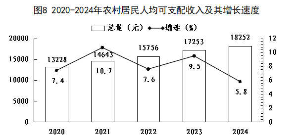 全年全縣居民人均可支配收入26144元,增長5.5%。按常住地分,城鎮(zhèn)常住居民人均可支配收入39894元,增長5.0%;農(nóng)村常住居民人均可支配收入18252元,增長5.8%。
