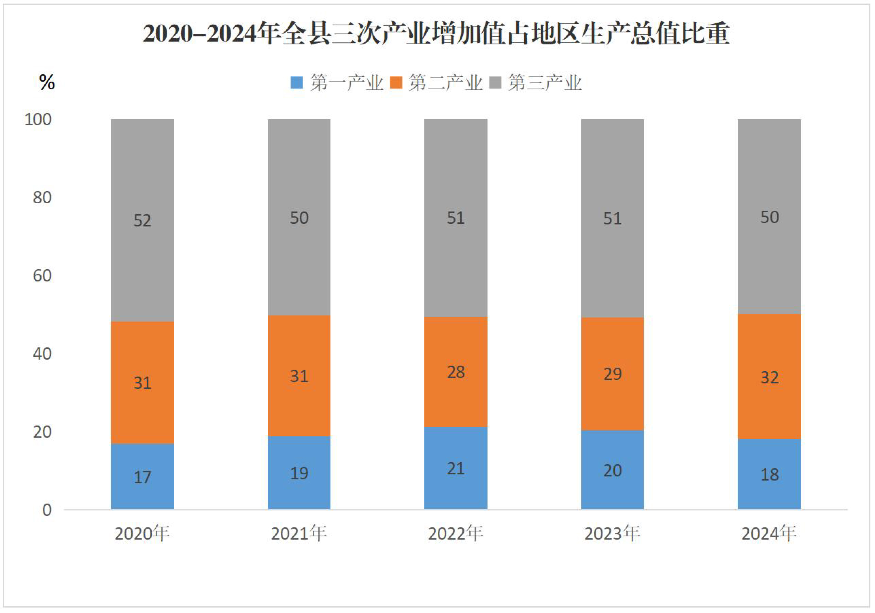 初步核算,全年全縣實(shí)現(xiàn)生產(chǎn)總值1358510萬元,按不變價(jià)格計(jì)算,比上年增長8.6%。其中,第一產(chǎn)業(yè)增加值250809萬元,增長4.4%;第二產(chǎn)業(yè)增加值429429萬元,增長22.4%;第三產(chǎn)業(yè)增加值678272萬元,增長1.9%。按常住人口計(jì)算,人均地區(qū)生產(chǎn)總值40981元,比上年增長7.4%。三次產(chǎn)業(yè)結(jié)構(gòu)為18:32:50。