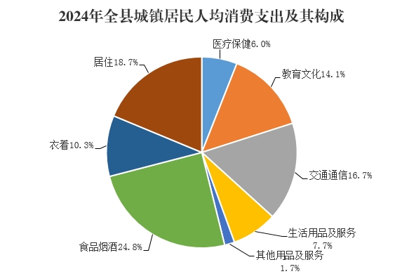 2024年農(nóng)村居民人均可支配收入16085元,比上年增長8.1%。其中,工資性收入6286元,比上年增長4.9%;經(jīng)營凈收入6057元,比上年增長5.8%;轉(zhuǎn)移凈收入3297元,比上年增長4.9%;財(cái)產(chǎn)凈收入445元,比上年增長20倍。農(nóng)村人均消費(fèi)性支出10633元,比上年增長8.7%。農(nóng)村居民恩格爾系數(shù)為34.0%。