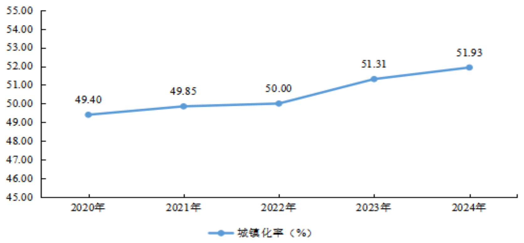 圖3?? 2020—2024年年末合山市常住人口城鎮(zhèn)化率2024年來賓市合山市人民政府國民經(jīng)濟(jì)和社會發(fā)展統(tǒng)計公報(2025年更新)