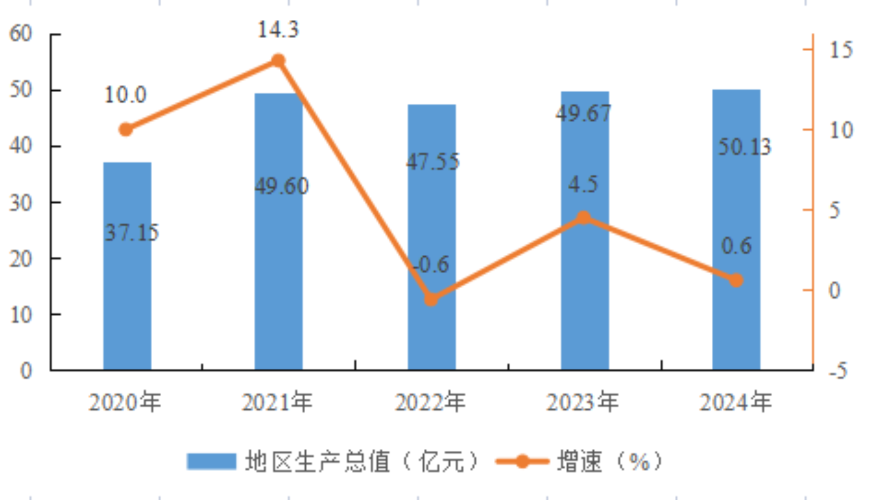 圖1? 2020年—2024年合山市生產(chǎn)總值及增長速度大牛工程師