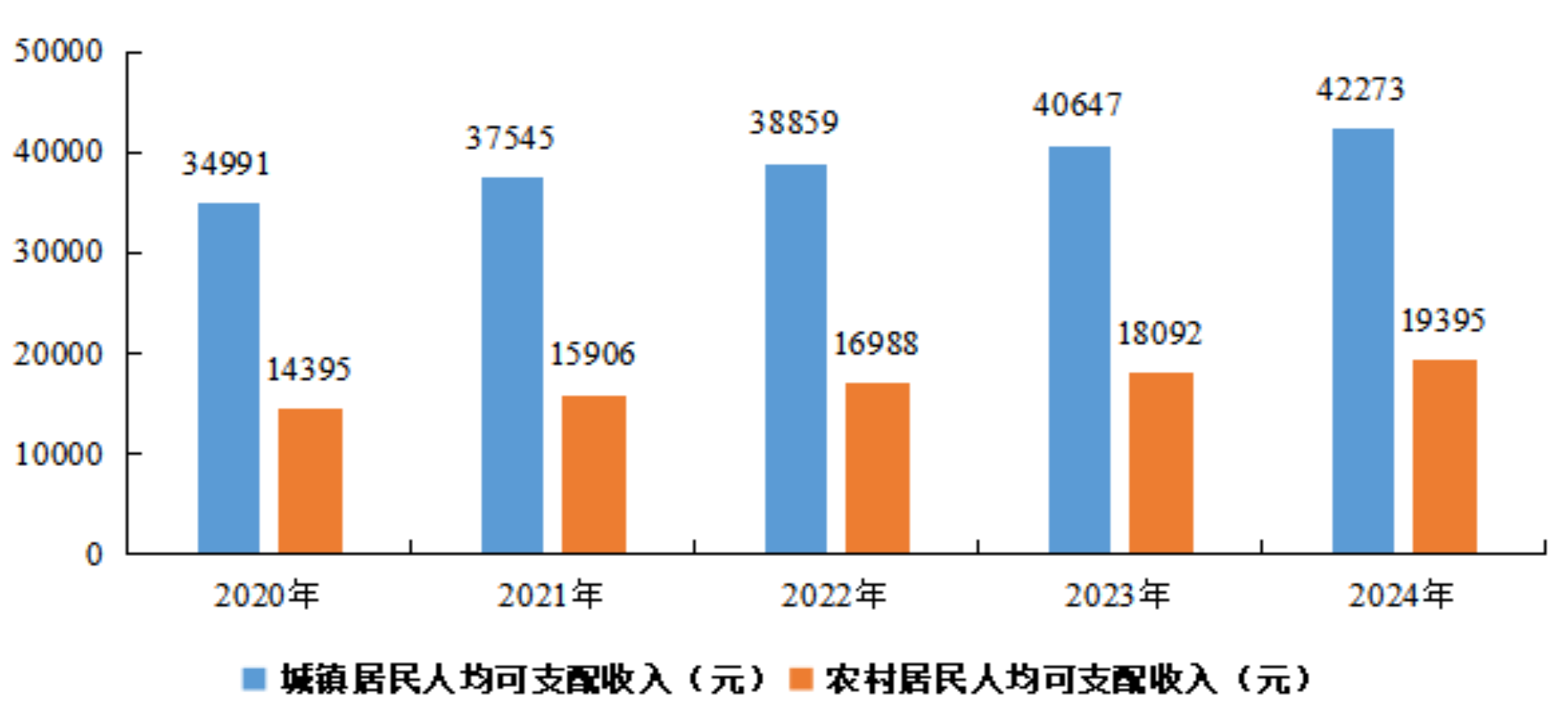 全年全市居民人均可支配收入34471元,比上年名義增長4.7%。按常住地分,城鎮(zhèn)居民人均可支配收入42273元,比上年名義增長4.0%;農(nóng)村居民人均可支配收入19395元,比上年名義增長7.2%。規(guī)劃綱要_十四五_資料共享
