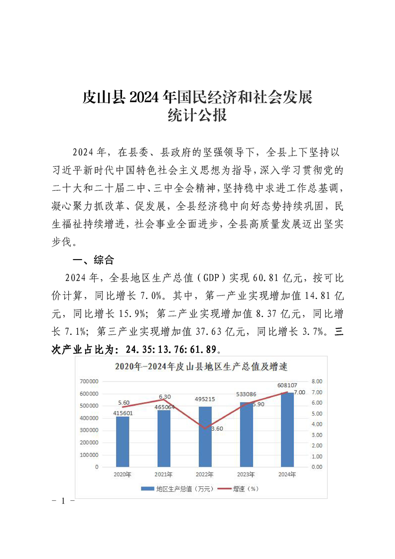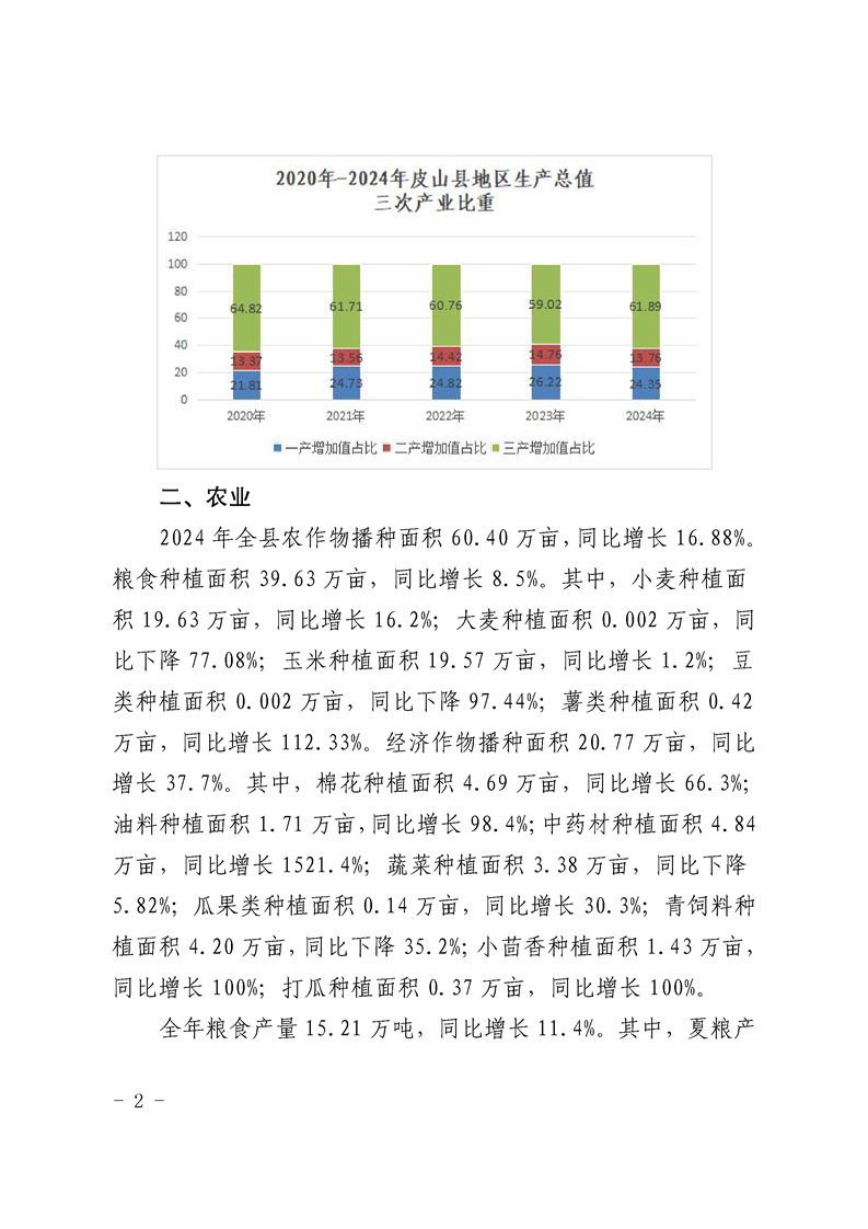 2024年和田地區(qū)皮山縣人民政府國民經(jīng)濟(jì)和社會發(fā)展統(tǒng)計公報(2025年更新)