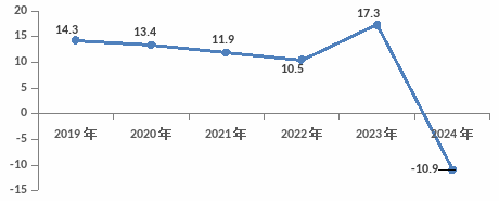 圖5 2019—2024年全市全社會(huì)固定資產(chǎn)投資同比增長(zhǎng)(%)