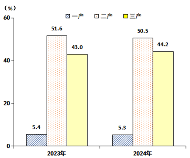 圖2:2023-2024年三次產(chǎn)業(yè)增加值占地區(qū)生產(chǎn)總值比重