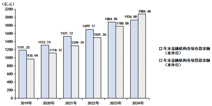 信貸規(guī)模持續(xù)擴(kuò)大。年末全市金融機(jī)構(gòu)本外幣各項(xiàng)存款余額1936.0億元,增長(zhǎng)2.7%,年末金融機(jī)構(gòu)本外幣各項(xiàng)貸款余額2086.6億元,增長(zhǎng)17.2%。