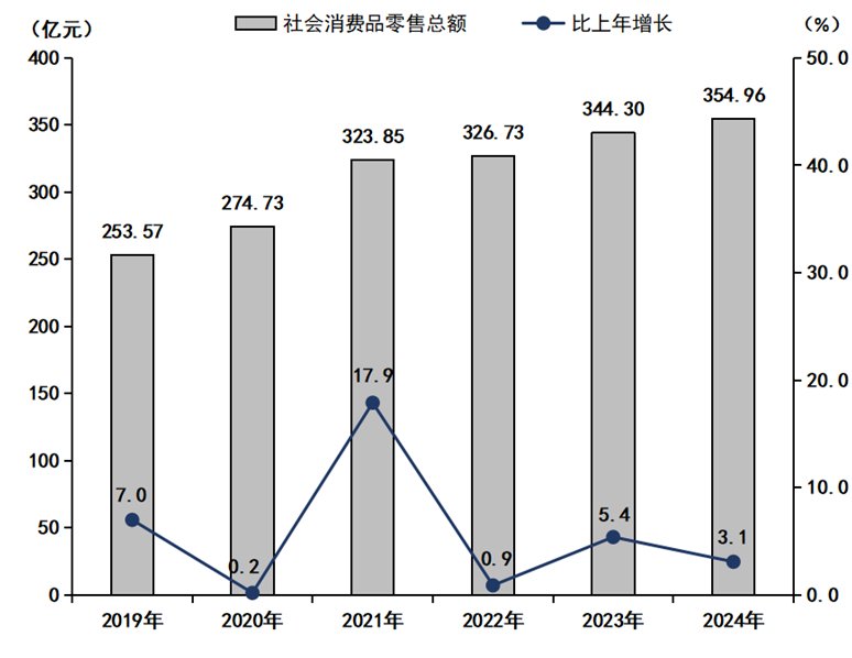 圖3:2019-2024年社會(huì)消費(fèi)品零售總額及增長(zhǎng)速度