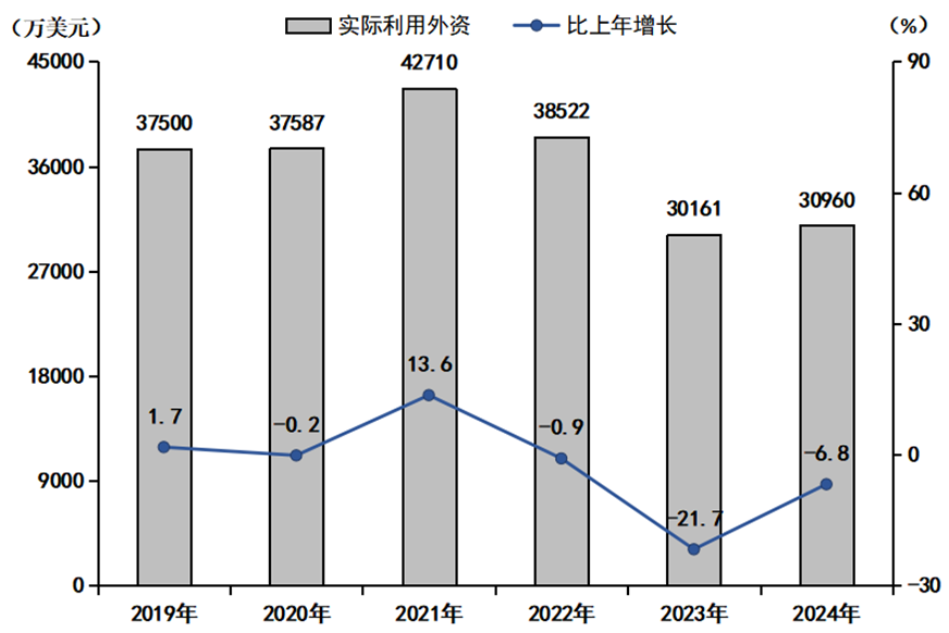 圖4:2019-2024年實(shí)際利用外資及增長(zhǎng)速度