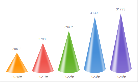 圖3:2020—2024年糧食總產(chǎn)量 單位:噸