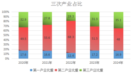 圖2?2020-2024年三次產(chǎn)業(yè)增加值占地區(qū)生產(chǎn)總值比重