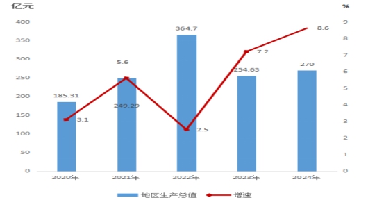 圖12020-2024年地區(qū)生產(chǎn)總值(GDP)及增長速度