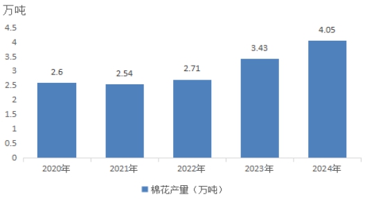 全年棉花產(chǎn)量4.05萬噸,比上年增加0.62萬噸,增產(chǎn)18.1%。