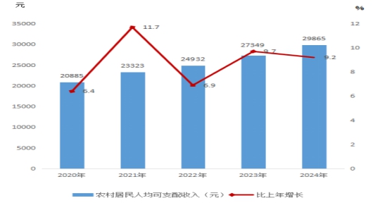 圖11?2020-2024年農(nóng)村居民人均可支配收入及其增長速度