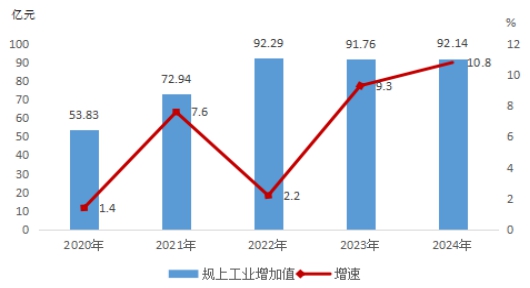 2024年末,全市規(guī)模以上工業(yè)企業(yè)98家,比上年增加10家。全年實(shí)現(xiàn)工業(yè)增加值增長10.8%。分按三大門類劃分,采礦業(yè)增加值同比增長151.7%;制造業(yè)同比增長6.6%;電力、熱力、燃?xì)饧八a(chǎn)和供應(yīng)業(yè)同比增長43.2%。