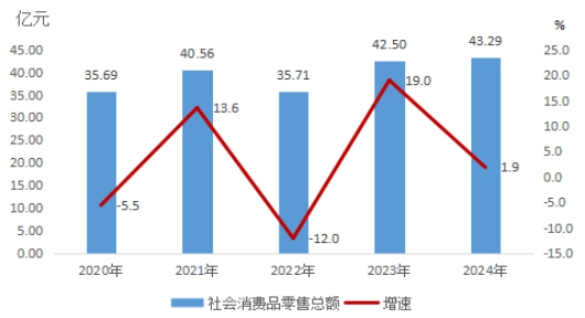 圖7?2020-2024年社會消費(fèi)品零售總額及其增長速度