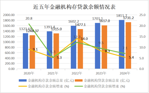 年末,全區(qū)金融機(jī)構(gòu)本外幣存款余額1811.7億元,比上年增長5.4%。金融機(jī)構(gòu)貸款余額1731.2億元,增長7.1%。金融機(jī)構(gòu)存貸比95.6%,比上年提升0.5個(gè)百分點(diǎn)。
