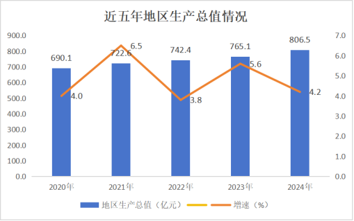 初步核算,全年實(shí)現(xiàn)地區(qū)生產(chǎn)總值(GDP)[2]1001.1億元,按可比價(jià)格計(jì)算,比上年增長4.0%(本級(jí)為806.5億元,按可比價(jià)格計(jì)算,比上年增長4.2%。其中:第一產(chǎn)業(yè)增加值87.6億元,增長2.6%;第二產(chǎn)業(yè)增加值237億元,增長3.8%;第三產(chǎn)業(yè)增加值481.8億元,增長4.7%。三次產(chǎn)業(yè)結(jié)構(gòu)之比為10.86:29.39:59.74)。人均地區(qū)生產(chǎn)總值56754元,比上年增加3670元。