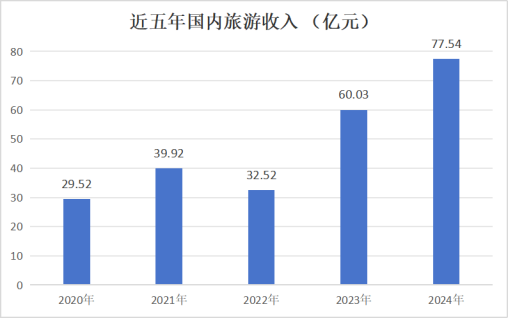全年國內(nèi)旅游人數(shù)1089萬人次,比上年增長34.6%。旅游總收入77.55億元,比上年增長29.2% ,其中,國內(nèi)旅游收入77.54億元,比上年增長29.2%。