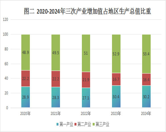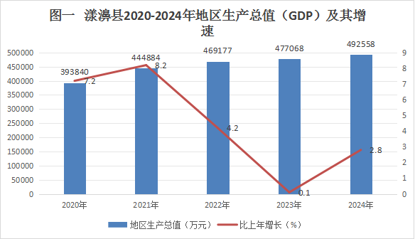 經(jīng)初步核算,2024年全縣地區(qū)生產(chǎn)總值(GDP)完成492558萬(wàn)元,按2020年不變價(jià)格計(jì)算,同比增長(zhǎng)2.8%,其中:第一產(chǎn)業(yè)增加值148706萬(wàn)元,同比增長(zhǎng)2.7%;第二產(chǎn)業(yè)增加值80631萬(wàn)元,同比增長(zhǎng)-0.4%;第三產(chǎn)業(yè)增加值263221萬(wàn)元,同比增長(zhǎng)4%。三次產(chǎn)業(yè)結(jié)構(gòu)為30.2:16.4:53.4。第二產(chǎn)業(yè)中工業(yè)實(shí)現(xiàn)增加值62539萬(wàn)元,同比增長(zhǎng)5.1%;建筑業(yè)實(shí)現(xiàn)增加值18133萬(wàn)元,同比增長(zhǎng)-19.6%。2024年人均地區(qū)生產(chǎn)總值(GDP)為51122元,同比增長(zhǎng)3.2%。