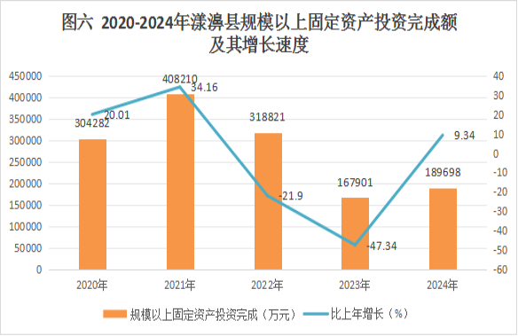 2024年,全縣規(guī)模以上固定資產(chǎn)投資(含房地產(chǎn)投資)完成189698萬(wàn)元,同比增長(zhǎng)9.34%,其中:500萬(wàn)元以上固定資產(chǎn)投資(不含房地產(chǎn)項(xiàng)目)完成179549萬(wàn)元,同比增長(zhǎng)15.69%;房地產(chǎn)投資完成10149萬(wàn)元,同比下降44.52%;能源以外工業(yè)投資完成18478萬(wàn)元,同比下降9.15%。