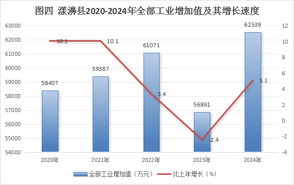 2024年,全縣全部工業(yè)增加值62539萬(wàn)元,同比增長(zhǎng)5.1%。其中規(guī)模以上工業(yè)增加值26379萬(wàn)元,同比增長(zhǎng)7%。在規(guī)模以上工業(yè)中,輕工業(yè)下降4.5%;重工業(yè)增長(zhǎng)10.8%。分門(mén)類(lèi)看,制造業(yè)增加值下降2.7%;采礦業(yè)增長(zhǎng)5%;電力、熱力、燃?xì)饧八纳a(chǎn)和供應(yīng)業(yè)增加值增長(zhǎng)12.9%。規(guī)模以上工業(yè)企業(yè)實(shí)現(xiàn)營(yíng)業(yè)務(wù)收入43095.8萬(wàn)元,同比增長(zhǎng)12.2%;完成利潤(rùn)總額752.1萬(wàn)元,同比增長(zhǎng)110.7%。全年規(guī)模以上工業(yè)企業(yè)完成銷(xiāo)售產(chǎn)值47127.5萬(wàn)元,同比增長(zhǎng)8.7%。