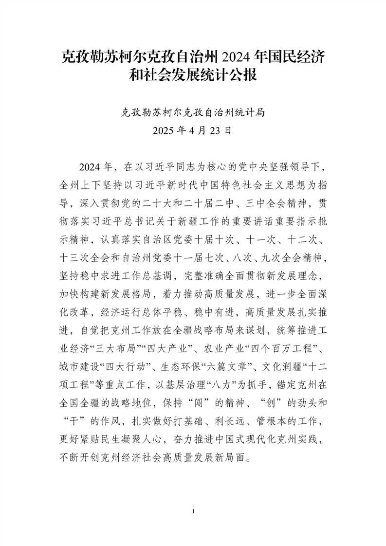 2024年新疆維吾爾自治區(qū)克孜勒蘇柯爾克孜自治州人民政府國民經(jīng)濟(jì)和社會發(fā)展統(tǒng)計(jì)公報(bào)(2025年更新)