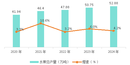 2020-2024年彬州市水果總產(chǎn)量及增速2024年咸陽(yáng)市彬州市人民政府國(guó)民經(jīng)濟(jì)和社會(huì)發(fā)展統(tǒng)計(jì)公報(bào)(2025年更新)