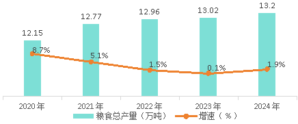 2020-2024年彬州市糧食總產(chǎn)量及增速大牛工程師