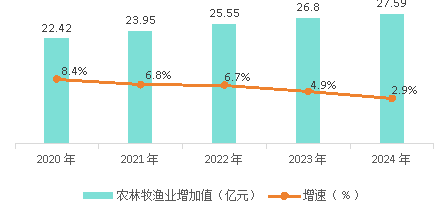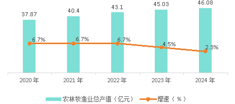 2020-2024年彬州市農(nóng)林牧漁業(yè)總產(chǎn)值及增速大牛工程師