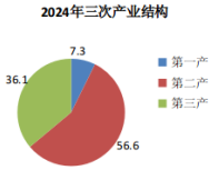 根據(jù)地區(qū)生產(chǎn)總值統(tǒng)一核算初步結(jié)果,2024年攀枝花市地區(qū)生產(chǎn)總值(GDP)1395.24億元,按可比價(jià)格計(jì)算,比上年增長(zhǎng)6.3%。其中,第一產(chǎn)業(yè)增加值102.14億元,增長(zhǎng)3.6%,對(duì)經(jīng)濟(jì)增長(zhǎng)的貢獻(xiàn)率為4.7%,拉動(dòng)經(jīng)濟(jì)增長(zhǎng)0.3個(gè)百分點(diǎn);第二產(chǎn)業(yè)增加值790.14億元,增長(zhǎng)6.4%,對(duì)經(jīng)濟(jì)增長(zhǎng)的貢獻(xiàn)率為56.9%,拉動(dòng)經(jīng)濟(jì)增長(zhǎng)3.6個(gè)百分點(diǎn);第三產(chǎn)業(yè)增加值502.95億元,增長(zhǎng)6.8%,對(duì)經(jīng)濟(jì)增長(zhǎng)的貢獻(xiàn)率為38.4%,拉動(dòng)經(jīng)濟(jì)增長(zhǎng)2.4個(gè)百分點(diǎn)。三次產(chǎn)業(yè)結(jié)構(gòu)由上年的7.6:56.7:35.7調(diào)整為7.3:56.6:36.1。全市民營(yíng)經(jīng)濟(jì)增加值711.75億元,增長(zhǎng)7.3%,占GDP的比重為51.0%。