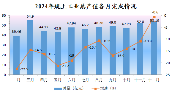 2024年,規(guī)模以上工業(yè)總產(chǎn)值完成576.8億元,同比下降11.3%;工業(yè)增加值同比增長0.9%。